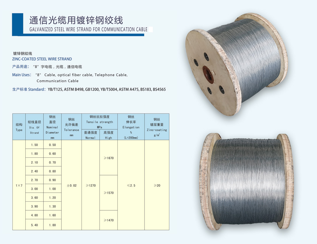 • 通信光電纜用鍍鋅鋼絲