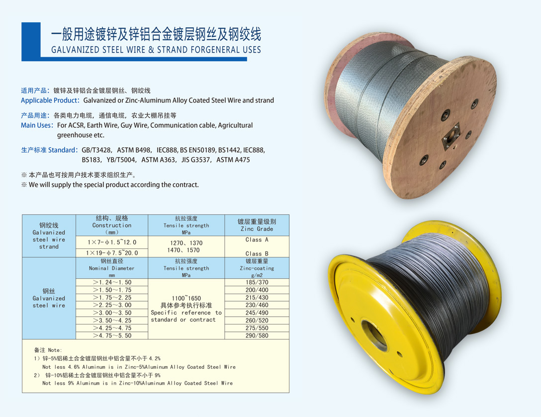 • 一般用途鍍鋅及鍍鋅鋁合金鍍層鋼絲及鋼絞線(xiàn)